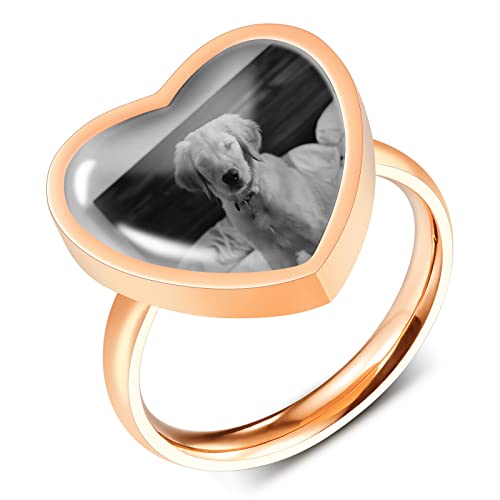 ❄️ ANELLI PERSONALIZZATI: Personalizzati con "Foto in bianco e nero" sul lato anteriore e "Testo" sul lato posteriore dell'anello a forma di cuore. Qualsiasi immagine può essere personalizzata, come l'immagine dei tuoi genitori, partner, figlia, figlio, nonni, animale domestico, la tua immagine sarà sigillata in uno strato di vetro e potrai sempre ricordare i tuoi preziosi ricordi con questo anello fotografico.