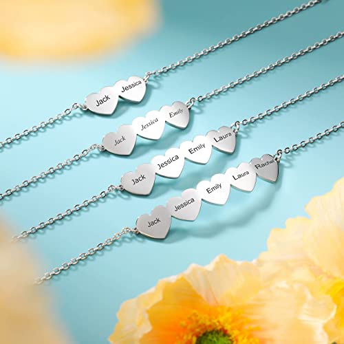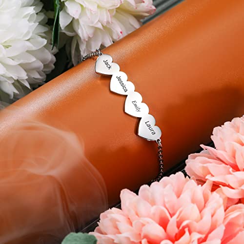INBLUE Bracciale Personalizzato a Forma di Cuore Con 2-5 Nomi Per Ragazze, Donne, Madri, Nomi, Incisioni, Braccialetti Regolabili Personalizzati per Regalo di Amicizia/coppie/famiglie (4 cuori)
