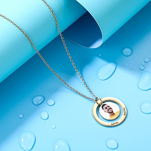 INBLUE Collana Personalizzata con 6 Nomi e Foto con Ciondolo a Forma di Cuore o Tondo Gioielli Personalizzati in Acciaio Inossidabile Regalo per Famiglia/Amici/Nonna/Madre