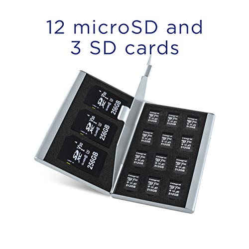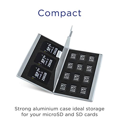 IncarDCASE02 - Custodia protettiva in alluminio per schede SD e MicroSD, 12 micro e 3 schede SD, in argento