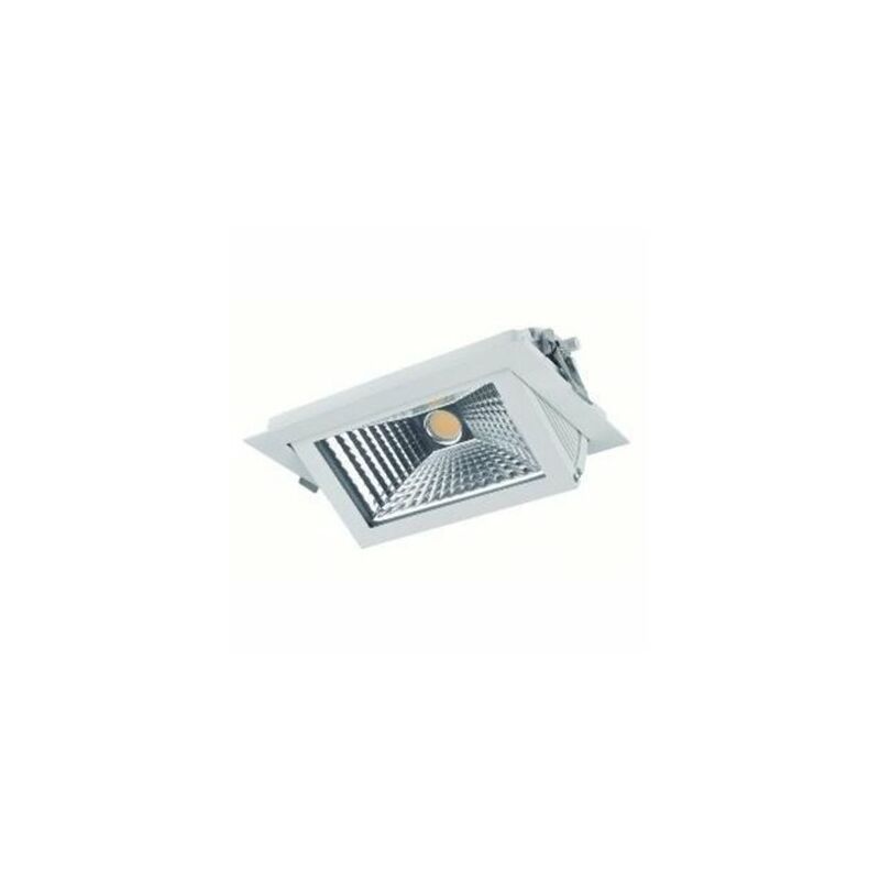 SINOPE Emp.Rect.Bascul. LED 42W MEAT Bl Sinope Faretto da incasso basculante LED 42W, Meat in bianco, realizzato in alluminio, ideale per l'illuminazione a LED nei negozi. Ora la versione LED incorpora la possibilità di utilizzare spettri speciali per il cibo e una versione multifuoco totalmente versatile.