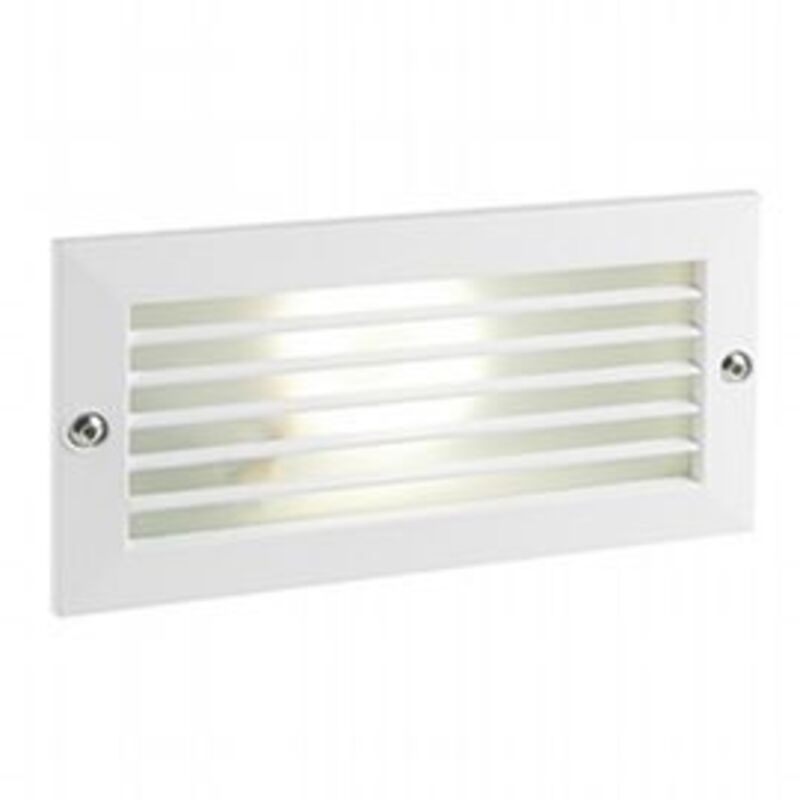 Collezione Escape PER INDICARE OSTACOLI, PASSAGGI E DELIMITAZIONI Incasso a parete in alluminio pressofuso e controscatola in termoplastico, color bianco goffrato, con griglia frangiluce.. Nato per illuminare muretti, giardini e vialetti. Disegnato per ambientazioni esterne, risulta ideale quando la luce ha compiti di indicazione di passaggi pedonali, di ostacoli ambientali e di delimitazione. Illuminazione a LED 230V. Luce diretta con diffusore in vetro satinato.