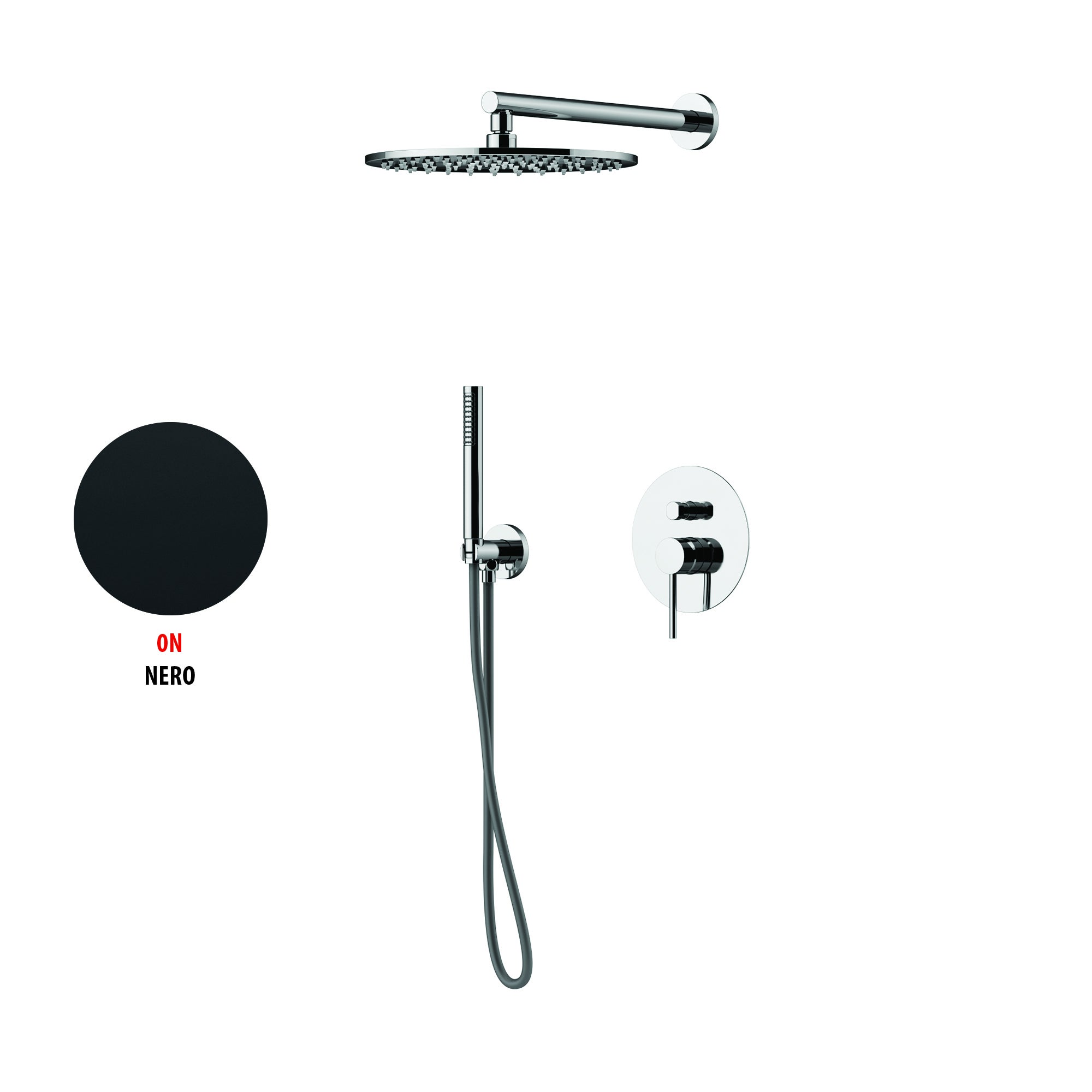 CIRCLE TWO Kit doccia Nero opaco. Serie Lineare, miscelatore per doccia, soluzione ad incasso. Superficie sempre perfetta e resistente della finitura.. Facile da installare: facilità e rapidità di installazione