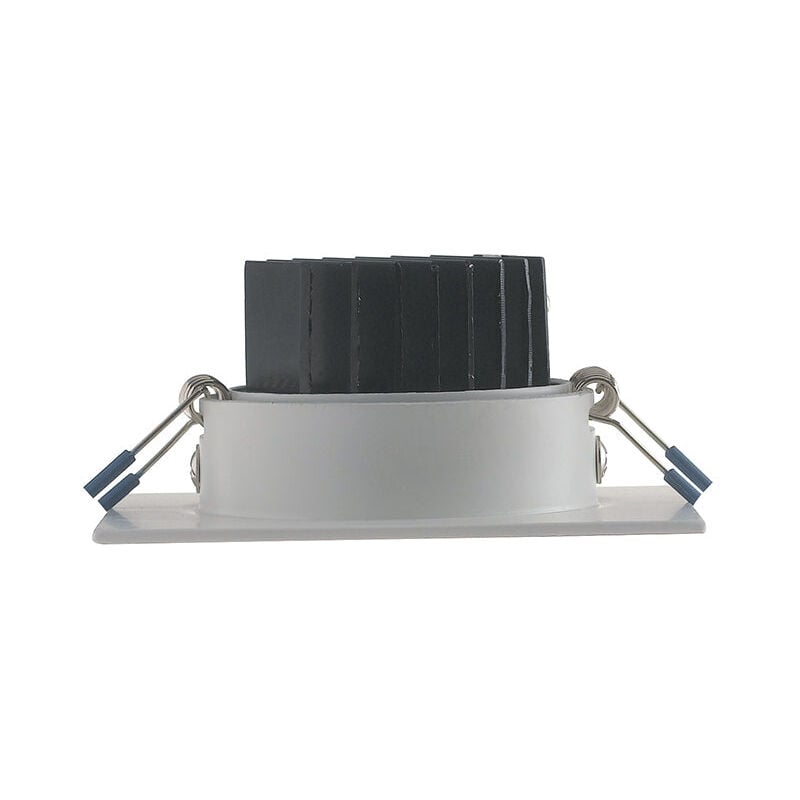 Faretto da incasso in alluminio nei colori bianco o silver goffrato. Colore: Nichel Materiale: Alluminio Tipo sorgente o lampadina richiesta: LED Watt: 7 Lumen: 650 Lumen Kelvin: 4000 Grado di protezione da corpi solidi e acqua: IP20 (solo uso interno) Altre informazioni: ;