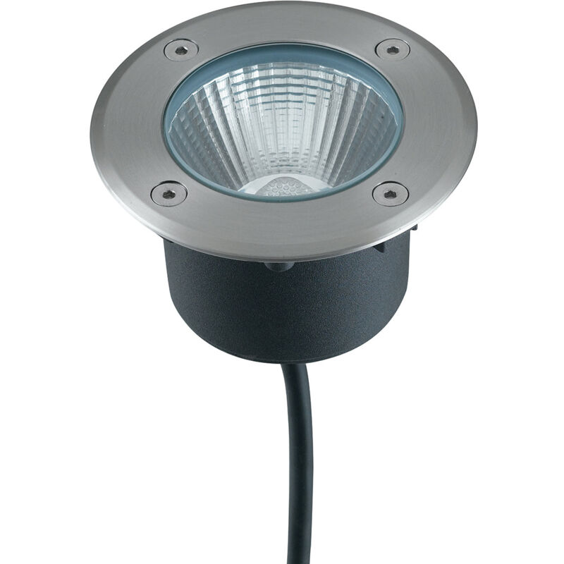 Incasso LED calpestabile da esterno Colore: Nichel Materiale: Acciaio Inox Tipo sorgente o lampadina richiesta: LED Watt: 8 Lumen: 1500 Lumen Kelvin: 3000 Grado di protezione da corpi solidi e acqua: IP67 Altre informazioni: Carrabile (fino a 2000 kg.) IK10;