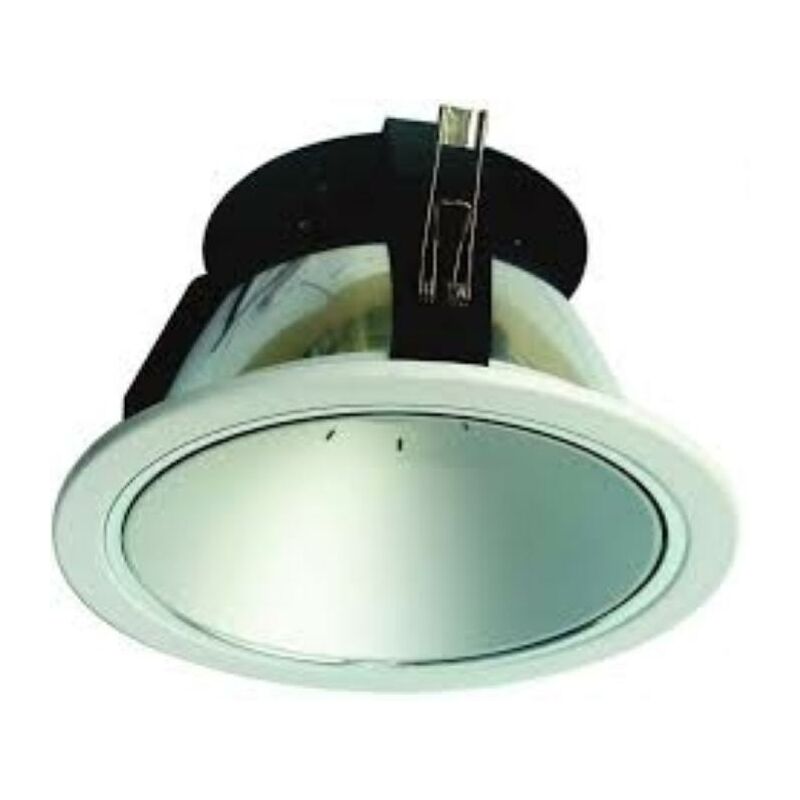 Incasso per interno, a soffitto, tondo con corpo inb alluminio e cornice bianca;