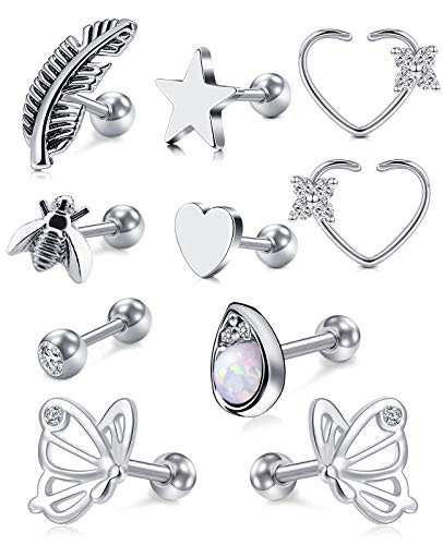 Incaton Helix Piercing 16G 1.2mm Piercing Helix Acciaio Chirurgico Helix Trago CZ Studs Barbell Orecchino Cartilagine Orecchio Piercing Gioielli 10 Pezzi