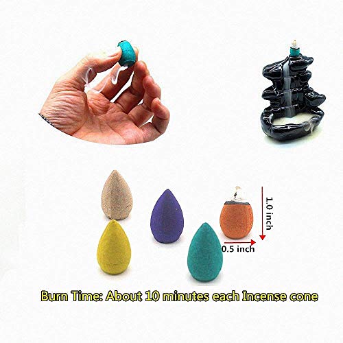 Contenuto della confezione: 100 coni di incenso, comprendenti: 20* coni di incenso al gelsomino, 20* al tè verde, 20* con fragranza di osmanto, 20* alla lavanda e 20* al legno di sandalo.