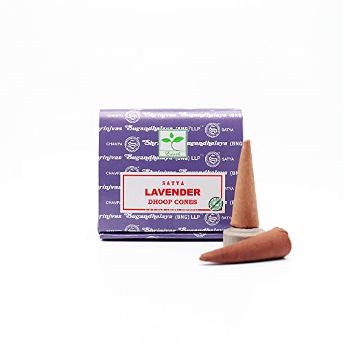 Coni di incenso naturali Satya Sai Baba alla Lavanda - 10 Coni di incenso con supporto in ceramica incluso - Fragranze Pure per Yoga, Meditazione ed Aromaterapia