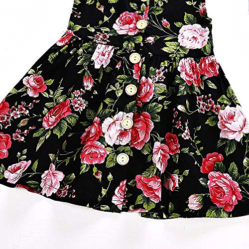 Inception Pro Infinite Abito Bambine - Senza Maniche - Vestito + Nastro per Capelli - Estate - Bimbe - Fiori - Rose - Bottoni - Vintage - Misura 100 - Nero 2-3 Anni - Idea Regalo Originale