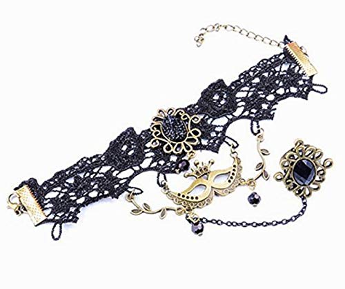 Inception Pro infinite Anello - Bracciale - baciamano - pizzo - macrame - ciondolo - maschera veneziana - nero - stile vittoriano - Veneziano