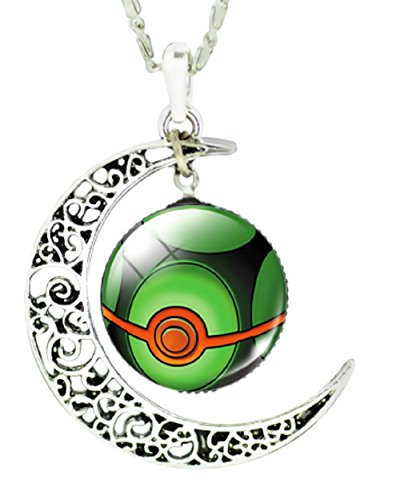 Inception Pro Infinite Mnpkmn - Collana Pokemon Go Sfera Poke' Pokeball Con Doppio Ciondolo Luna E Cabochon In 7 Colori (Verde - Rosso)