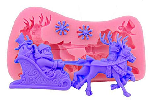 Inception Pro Infinite SA021 - Stampo in silicone per uso alimentare di babbo natale con la slitta e fiocchi di neve - Pasta di zucchero - Fondenti - Torte - Pancake - Muffin - Decorazioni