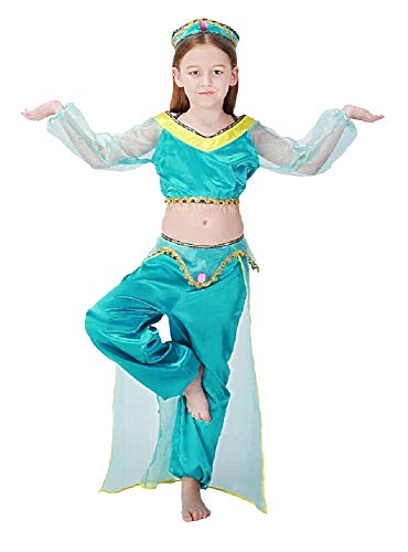 Inception Pro Infinite Vestito Jasmine Bambine - Araba - Odalisca - Travestimento - Principessa - Hallowen - Carnevale - Bimbe - Cosplay - Azzurro (Misura 130 - Idea regalo originale - 8 anni) - 7