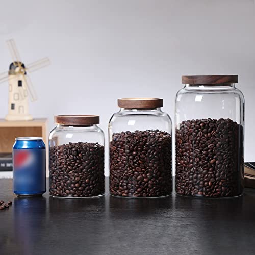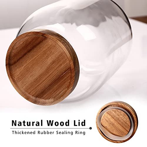 INCETUE Barattolo in vetro da 1200 ml con coperchio in legno, impilabile, trasparente, cilindrico, con coperchio ermetico in bambù, per alimenti, caffè, farina, spaghetti