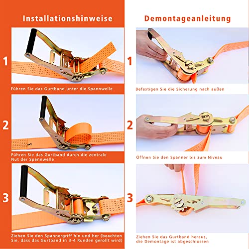 Cinghia a cricchetto multiuso: la cinghia di tensione con super resistenza è spesso utilizzata per il trasporto di merci pesanti, sia che si tratti di hobby camper o furgoni. Cinghia di fissaggio per quasi ogni utilizzo di rimorchi o rimorchi per moto e camion.