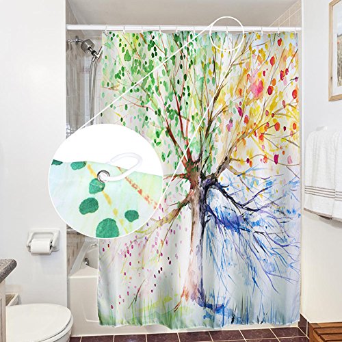 Inchiostro Colore Albero Doccia Tenda, Stampa Digitale Tessuto In Poliestere Impermeabile Mildewproof Bagno Sipario Con 12 Ganci, Vintage Rustico Arredamento Paesaggio Marino Tenda Per Doccia Bagno Water Casa