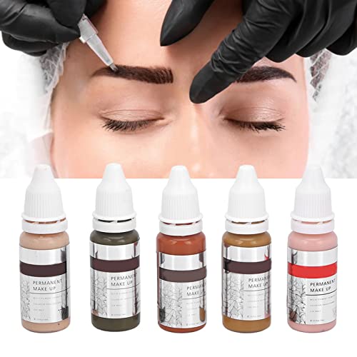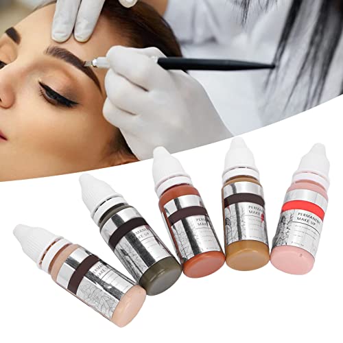 Inchiostro del Tatuaggio per la Pratica, 5 Pezzi Microblading Inchiostro Ausiliario Colore Sopracciglio Eyeliner Trucco per Labbra Set di Pigmenti per Allenamento per Tatuaggi 15ml