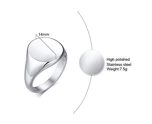 VNOX Incisione Personalizzata 14mm Acciaio Inossidabile Lucido Anello con Sigillo Anello Sigillo Anello per Uomo Donna,Regalo per Amico,papà,Figlio Fidanzato