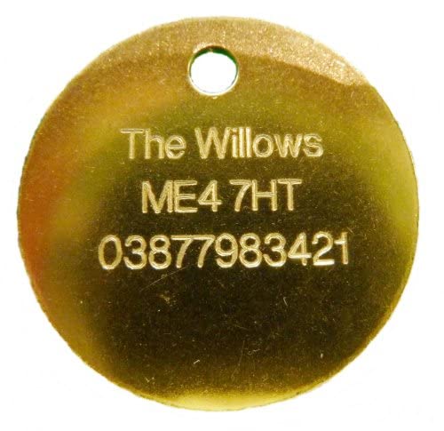 Incisione 32 mm rotondo in ottone Pet Cat Dog Luggage ID tag Identity Disc - incisione personalizzata gratuita, anello e affrancatura - in stock e spedito da m & K forniture