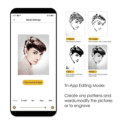 【DESIGN PORTATILE E FORTE LUCE 】La macchina per incisione compatta può essere trasportata e alimentata da un alimentatore mobile. Non esiste un design di base, nessun limite di altezza di incisione, formati di file supportati: JPG / BMP / PNG / G-code, tutte le foto/vettoriali di supporto.
