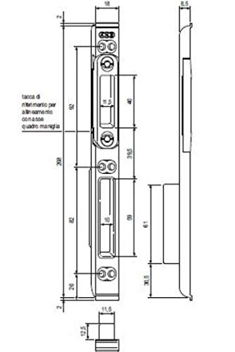 INCONTRO CONTROPIASTRA AGB PER SERRATURE MULTIPUNTO AD INCASSO MISURA 208 LUNGHEZZA TOTALE 211 mm LARGHEZZA 18 mm PROFONDITÀ 8,5 mm