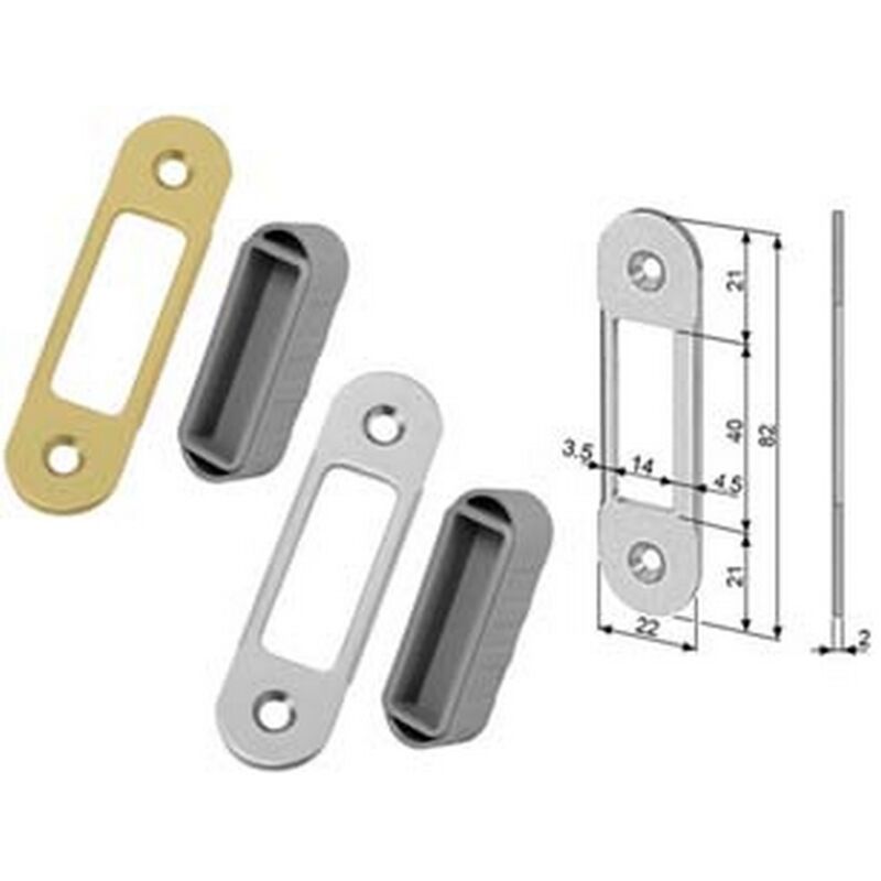 Incontro regolabile in acciaio con bordo tondo, larghezza mm.22, lunghezza mm.82 - studiato per l?uso con la vaschetta di copertura del foro scrocco - compatibile con polaris 2xt, revolution xt, mediana evolution e centro solo scrocco