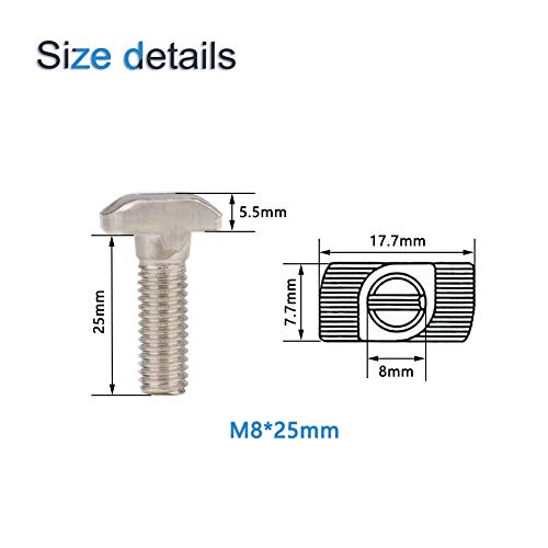 INCREWAY 10 bulloni M8 T M8 in acciaio al carbonio nichelato T-Slot Drop-in Stud scorrevole vite bullone per 40 serie Standard europeo T-Slot profilo in alluminio