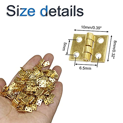 INCREWAY Mini cerniere in ottone, 100 pezzi antichi mini cerniere pieghevoli con viti di rotazione di 180 gradi per casa delle bambole fai da te (0,8 x 1 cm)