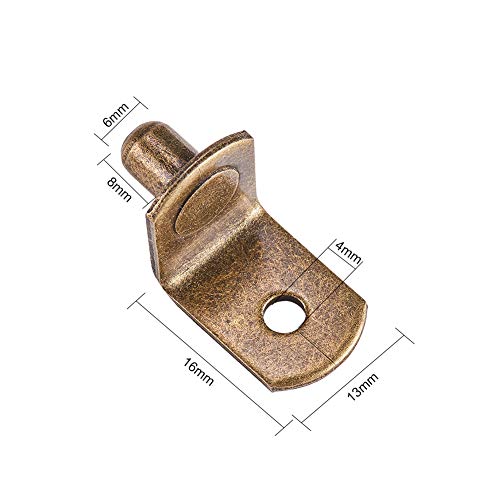 Increway, pioli di supporto per mensole con foro, a forma di L, confezione da 50 pezzi, Ottone anticato