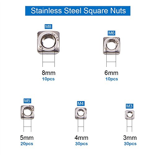 Increway - Kit di dadi quadrati in acciaio inox, colore: argento