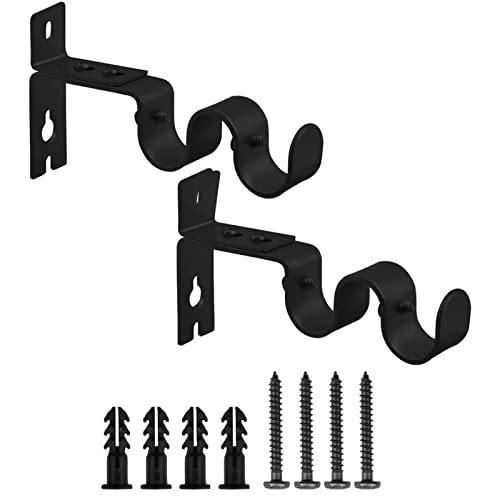 INCREWAY Staffa per asta per tenda, 2 pezzi, colore nero, resistente, regolabile, doppia staffa per asta per tenda
