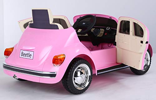 Indalchess Maggiolino VW Beetle Retro, Rosa, 12V, Sedile in Pelle, Telecomando
