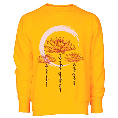 New Indastria Felpa Girocollo Unisex NAM Myoho Renge Kyo Fiori di Loto Daimoku - Yoga E Meditazione - S-Gialla