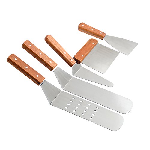 Indeedshare utensili da cucina in acciaio INOX - Paletta per torta, pasticceria farina cutter, spatola e raschietto per Teppanyaki grill e griglia, 5 pezzi