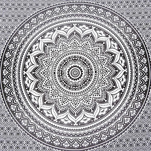 Eyes of India - Large Queen Black White Mandala Wall Hanging Ombre Tapestry Bedspread Beach Bohemian Accent Boho Chic Indian Handmade