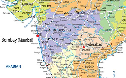 India mappa politica - Carta plastificata [GA] A2 Size 42 x 59.4 cm