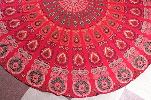 Indian Roundie Feather Peacock Mandala Tapestry, Hippie Gypsy Wall Hanging, Bohemain Dorm Decor Mandala Tapestries, Boho Gypsy Cotton Tablecloth Beach Towel, Round Yoga Mat, 70 Inch. By Bhagyoday by BhagyodayFashions