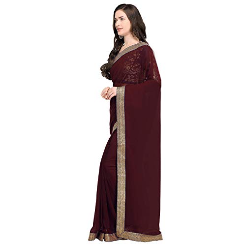 Indiano Chiffon con Camicetta Pezzo Saree Marrone