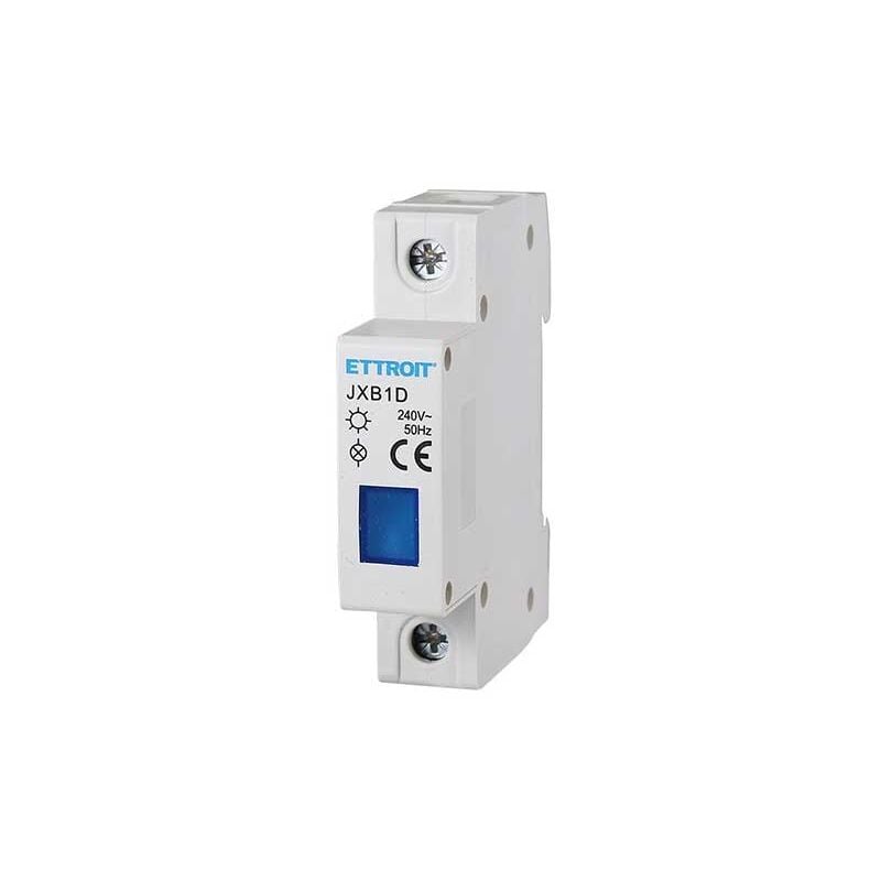 Indicatore luminoso di segnalazione LED luce blu Tensione Nominale 230V occupa 1 modulo DIN Ettroit sku. JXB1D-19 Viene utilizzato per indicare la presenza di tensione con indicazione luminosa visiva. Tipologia: Indicatore Luminoso Led Numero di Poli: 1 Tensione Nominale: 230V AC Colori: blu Totale Dissipazione di Potenza: 0.5W Frequenza di rete: 50/60 Hz Connessione: Terminali 2.5mm Modalità di montaggio: Aggancio Supporto per montaggio: Guida DIN Norme di riferimento: EN60947-1 / EN60947-5-1 Grado di protezione (IP): IP20