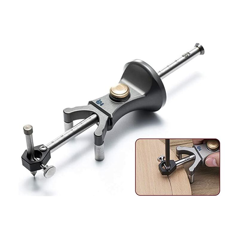 Realizzato in lega di alluminio, pratico e resistente all'usura, ha una lunga durata. Può disegnare un arco con rulli in acciaio inossidabile. Con lama in acciaio al tungsteno incisiva e liscia . Facile da usare e misurare, alta precisione, più professionale. Può contenere penne di diverse dimensioni, adatte per legno, legno ceramica, ferro, acrilico, ecc.