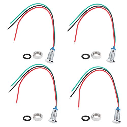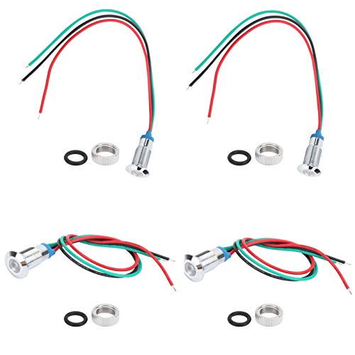 4 set di indicatori luminosi LED, LED rotondi precablati Indicatori luminosi di segnale impermeabili in metallo bicolore Catodo comune 8 mm 3‑6 V(Rosso e verde)
