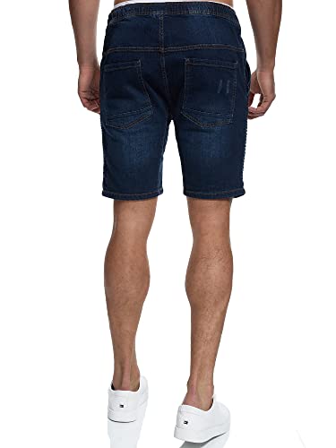Indicode Uomo Ernest Pantaloncini in Jeans con 4 Tasche e Fascia Elastica Vita 98% Cotone | Corto Denim Stretch Pantalone Used Look Washed Destroyed Regular Fit Pantaloni Casual Dark Blue S