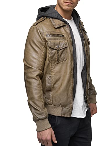 Indicode Uomini Aaron Giubbotto in Pelle con Cappuccio Staccabile Beige X-Large
