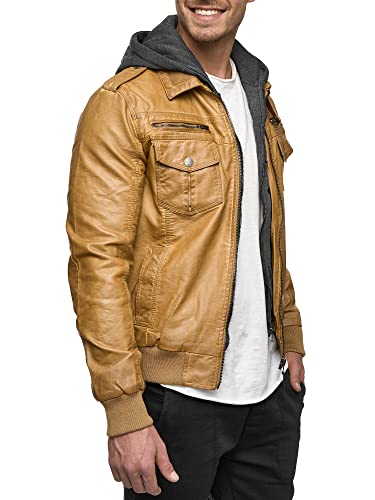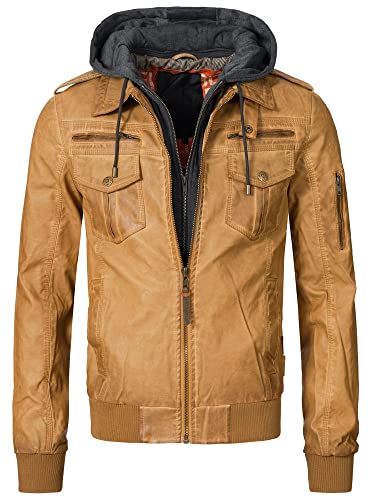 Indicode Uomini Aaron Giubbotto in Pelle con Cappuccio Staccabile Camel Small