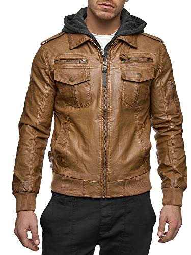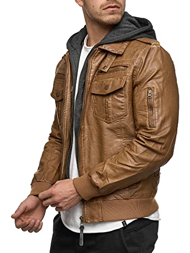 Indicode Uomini Aaron Giubbotto in Pelle con Cappuccio Staccabile