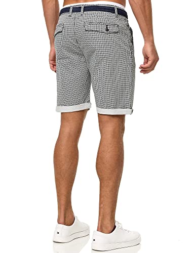 DETTAGLI E HIGHLIGHT: Pantaloncini chino alla moda "Bourchier" per uomo di INDICODE! Il classico pantaloncino chino impressiona con un moderno motivo a quadri e una cintura che crea grandi contrasti di colore.