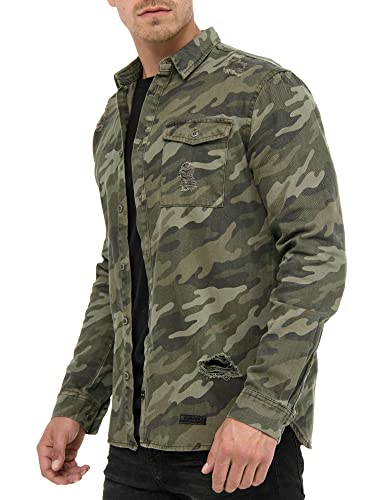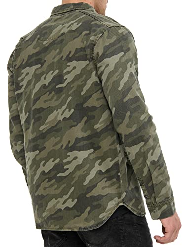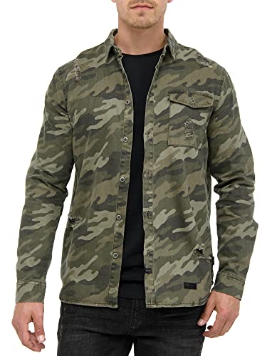 Indicode Uomini Bath Camicia in Cotone con Taschino sul Petto Dired Camouflage Small