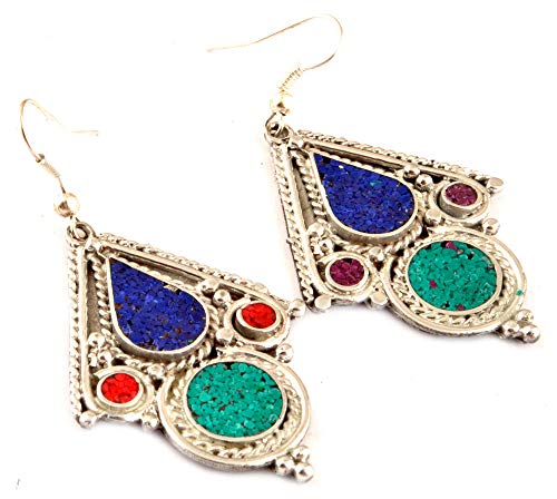 Indie artigiani etnico goccia turchese corallo lapis chips smaltato orecchini con gemme, in argento 925 placcato Nepali
