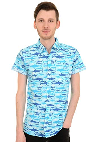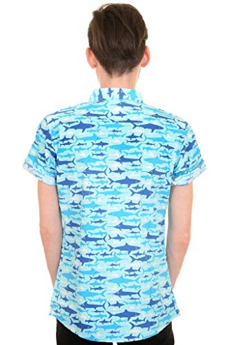Run & Fly Uomo Indie Kitsch Shark Attack Camicia a Manica Corta